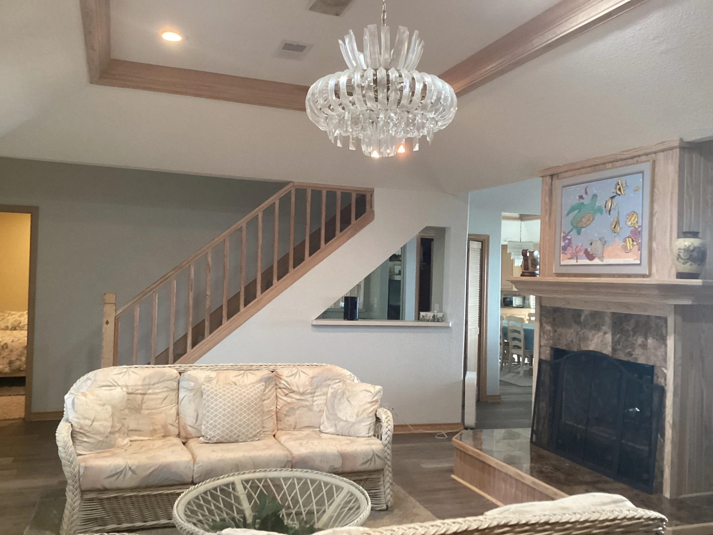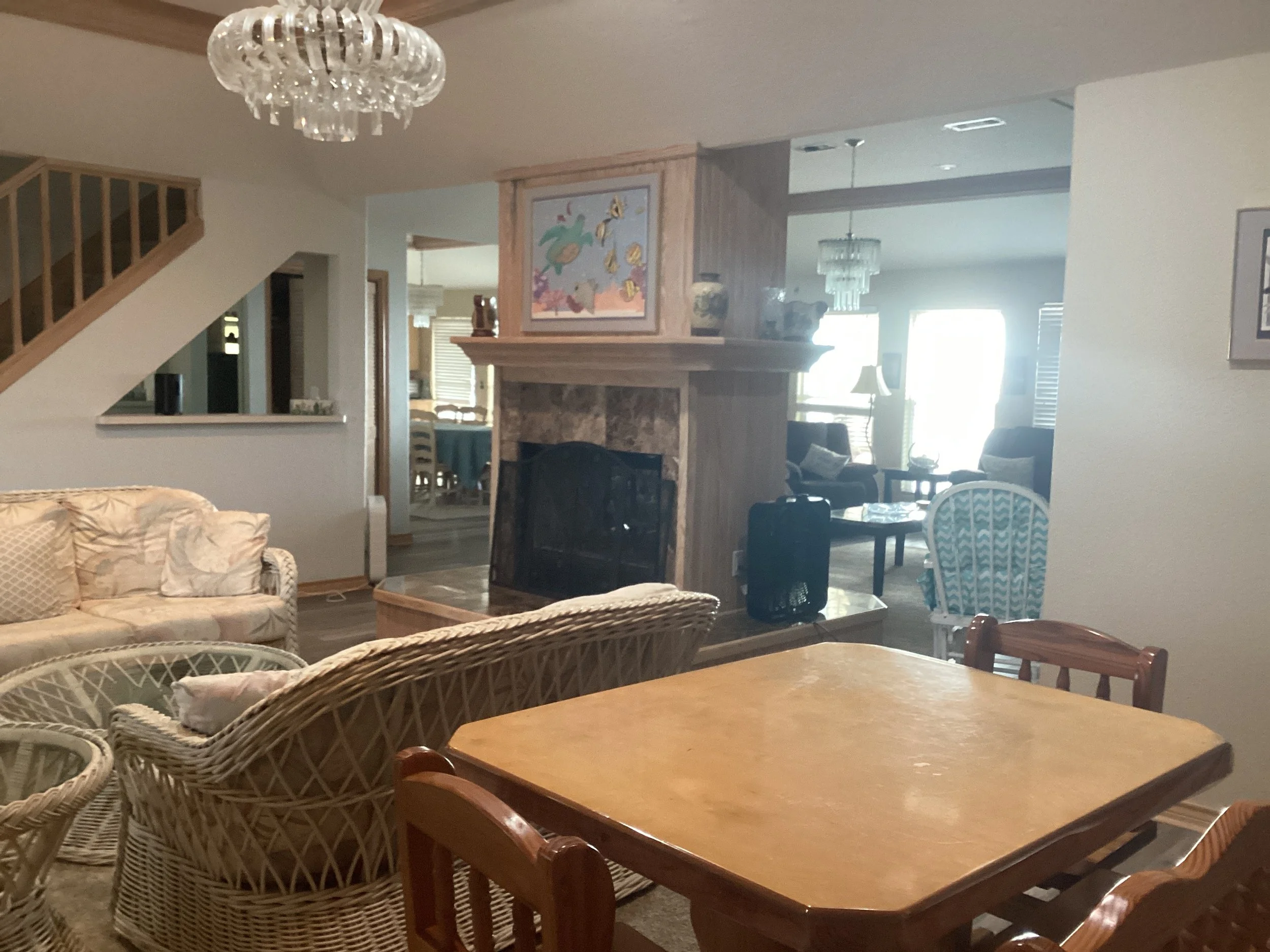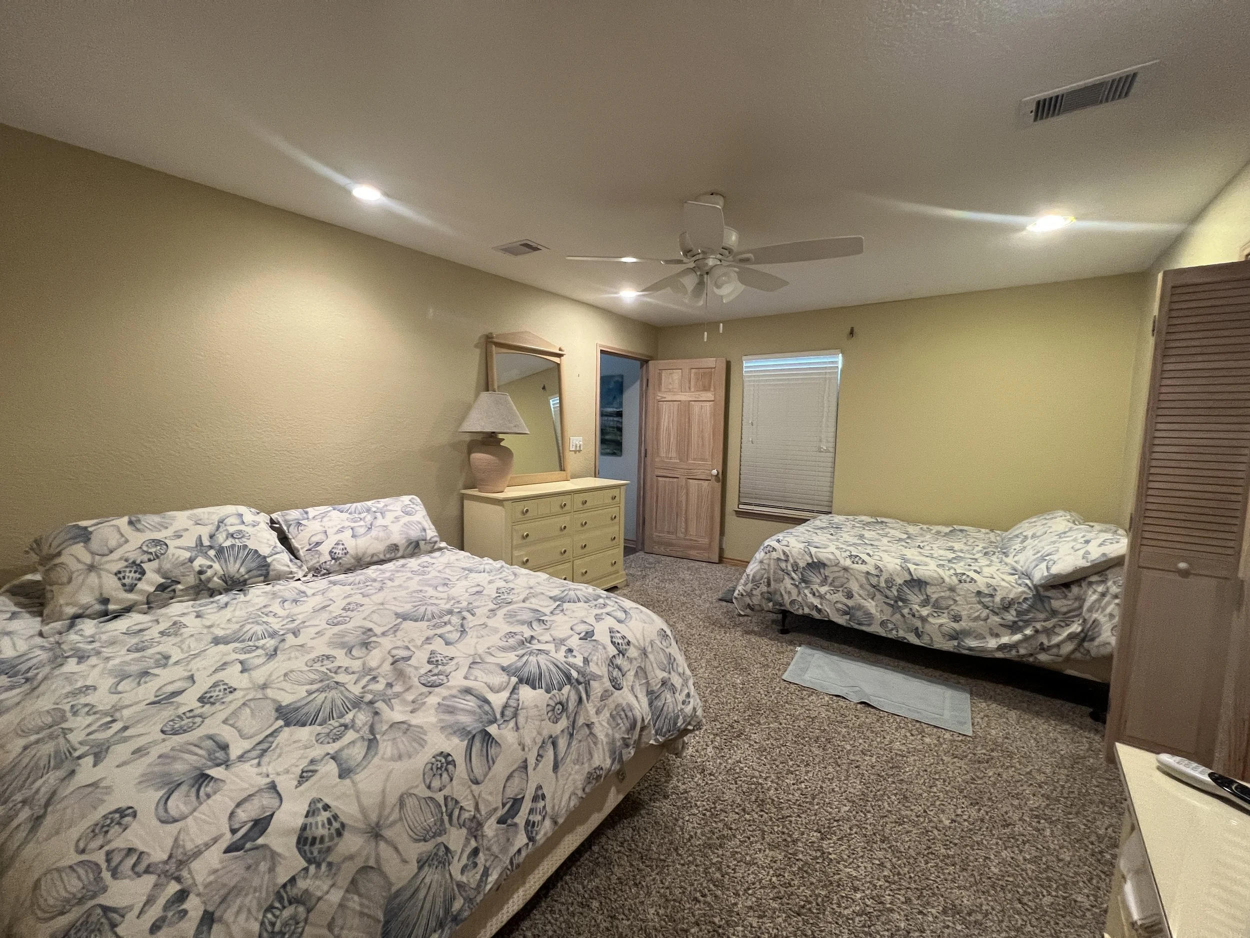 On the ground level, you’ll find spacious parking and an entertainment area, complete with a convenient outdoor half bath for cleaning off after easy beach days. Upstairs, the heart of the home unfolds across two beautiful living levels. Including two inviting living rooms, a generous dining area, and a fully equipped kitchen that creates a warm, open space for gathering with family and friends.